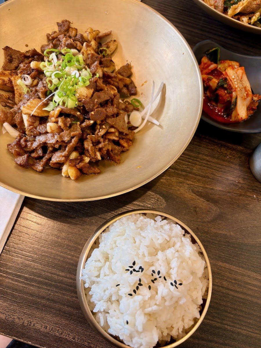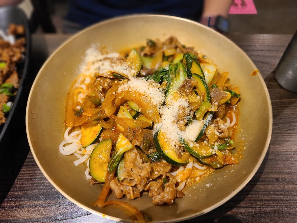 The stir fried noodles with beef was incredibly delicious. I very much enjoyed my meal. The amount of spiciness was just right. You order through a tablet which was very convenient. The worker was very knowledgeable and talked us through the menu. My accomplice who does not really like kimchi thought it was good as did I. We came in very close to their lunch time, but we were still accommodated. I will be back